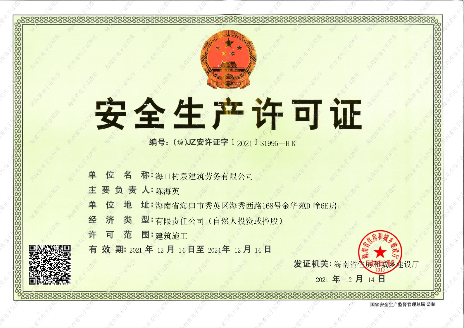 海口樹泉建筑勞務有限公司成立于2011年,公司位于海口,其前身是一家專業(yè)建筑施工隊,自2004年即開始在海南從事建筑勞務施工。自成立至今,公司已經(jīng)擁有一支科學管理、質量過硬、能打硬仗,搶工期的專業(yè)隊伍。能獨立承擔大中型工業(yè)與民用建筑 、室內外裝修、各類機電設備安裝工程。代表工程有海口濱海華庭、三亞時代海岸T01/02/04/05棟高層、合肥東海花園二期、陵水富力灣B區(qū)高層、三亞金中海(酒店)、瓊海大印經(jīng)典花園、海口環(huán)球海景大酒店(四星級酒店,在建中)、陵水珍珠大廈(五星酒店)、海口萬達廣場、美蘭機場二期。